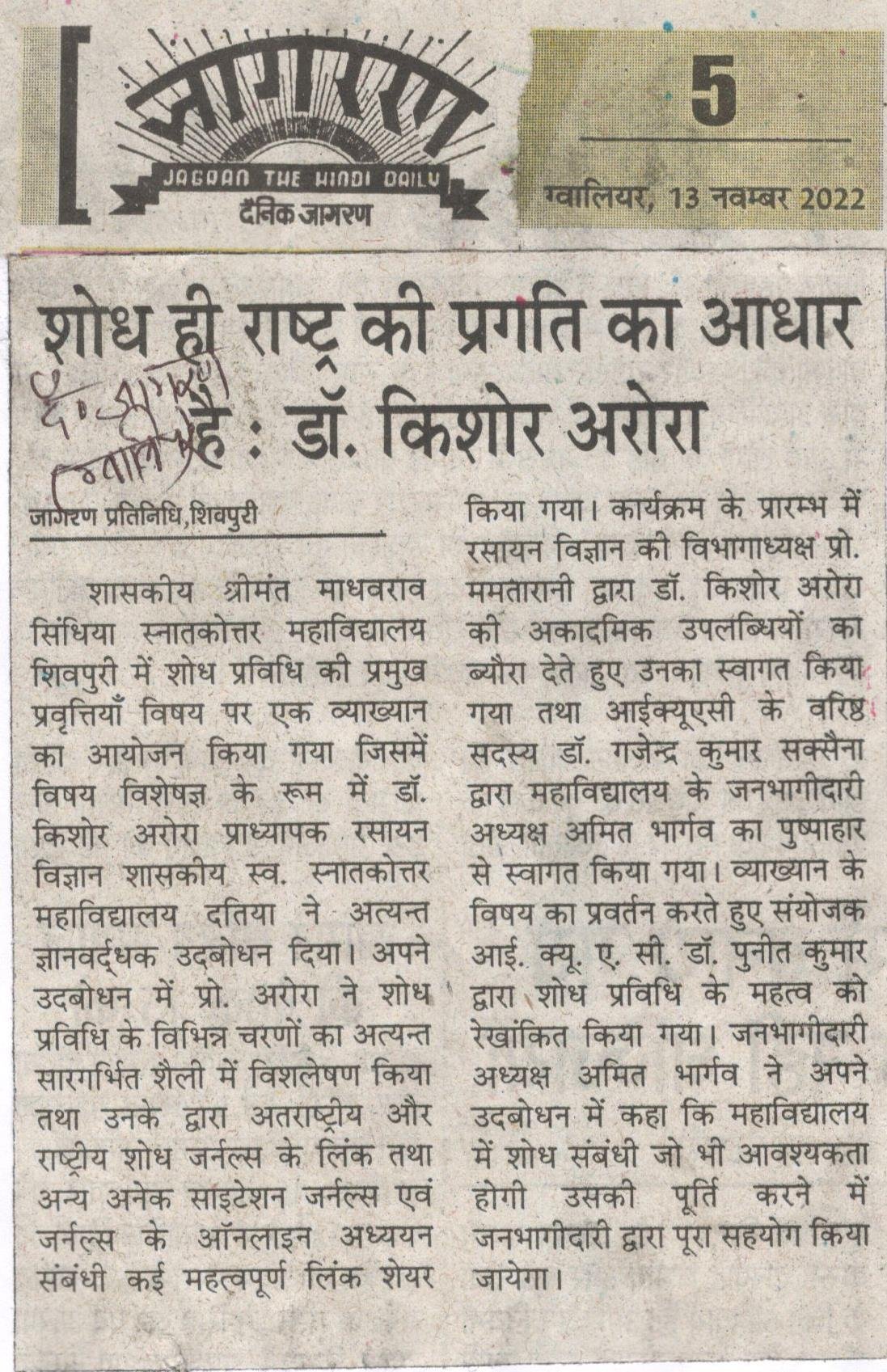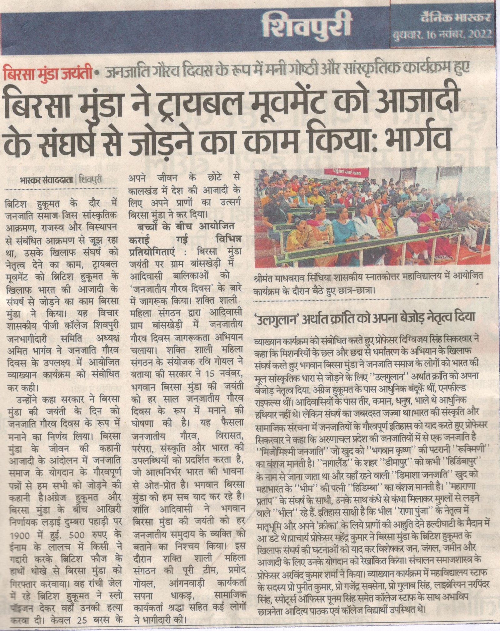 शास छत्रसाल महा. पिछोर में आयोजित व्याख्यान समारोह